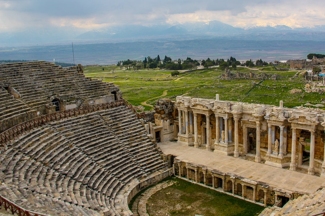 Ali do lado, no mesmo complexo estão as ruínas de Hierápolis, construída durante o Império Romano. A cidade era bem cosmopolita e havia um Teatro Romano (uma réplica do de Roma) que ainda permanece bem conservado e que chegou a abrigar 12mil espectadores.