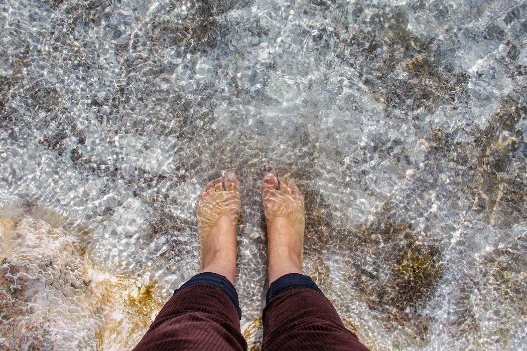 Do Grande Teatro, você pode descer então e encontrar as piscinas termais de Pamukkale. Para pisar no calcário é necessário tirar os sapatos, por uma questão de preservação.