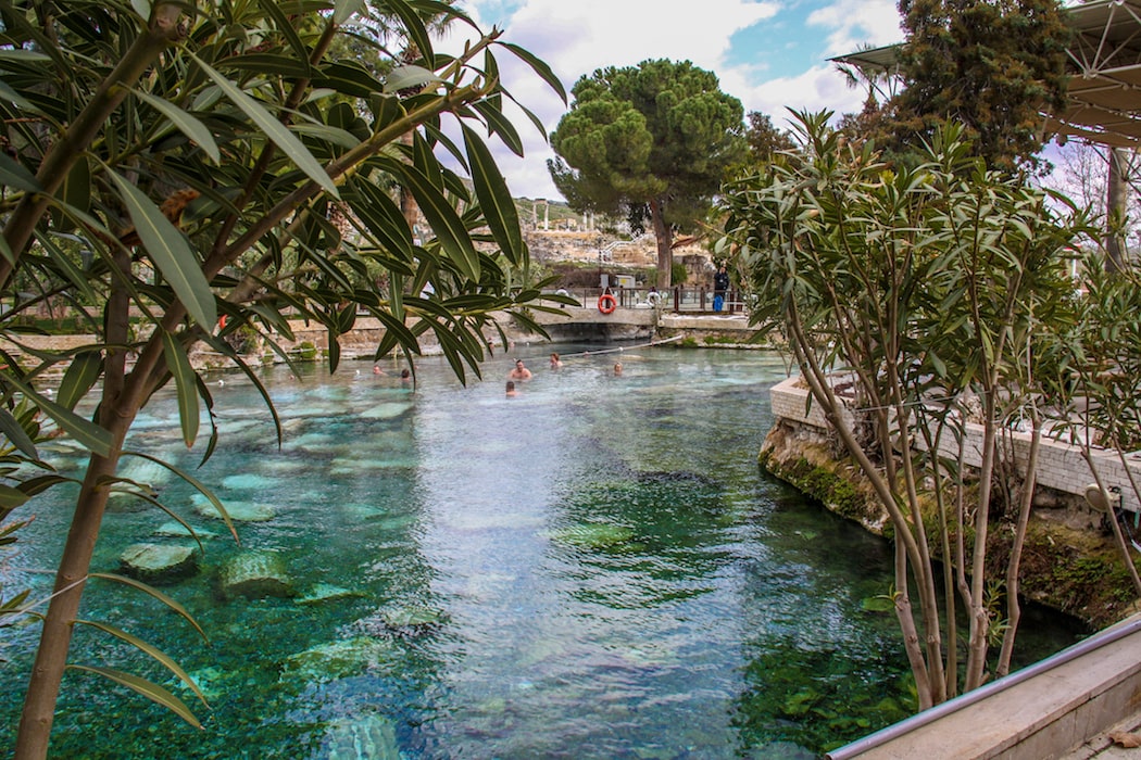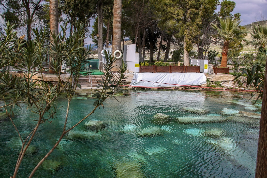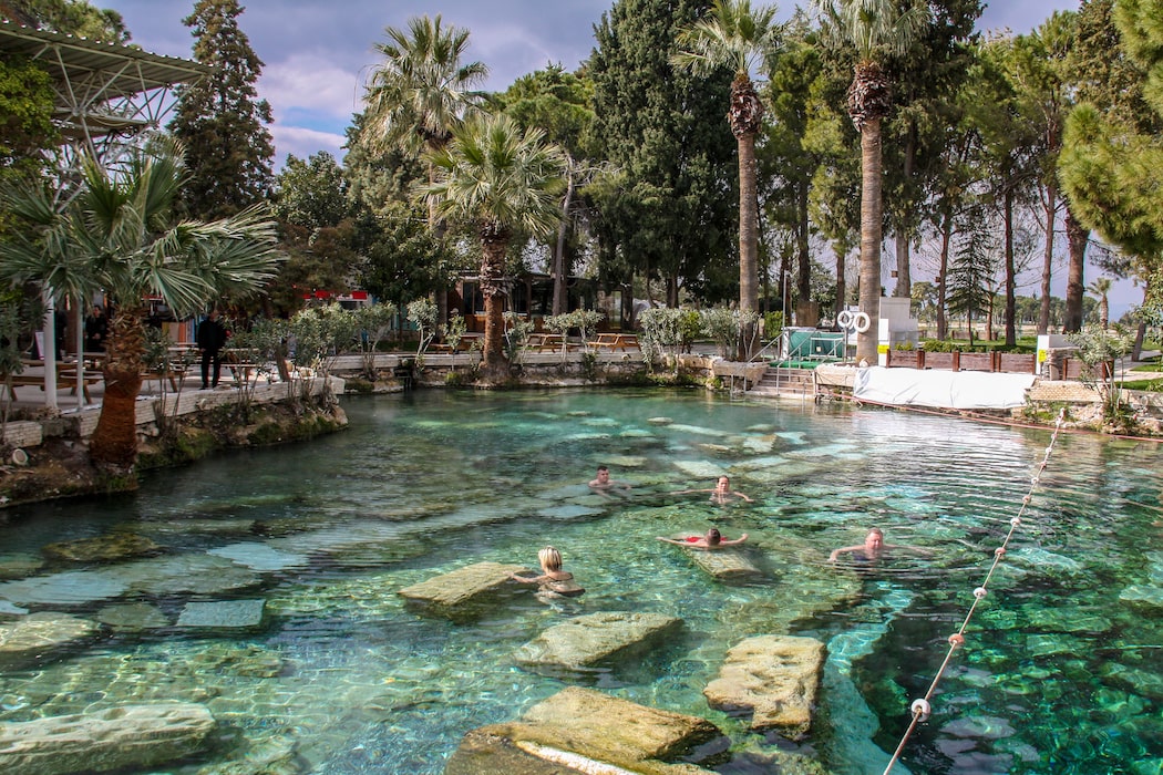 No mesmo complexo, ainda existe a Antique Pool, também conhecida como Piscina de Cleópatra ou Piscina Sagrada. O local é uma grande piscina com águas termais que beiram os 35oC. Essas águas termais ricas em minerais são conhecidas como tendo propriedades medicinais. Apesar do nome, não se sabe ao certo se realmente a Rainha Egípcia frequentava o local! Mas é legal dizer que nadou na mesma piscina da Cléopatra né?